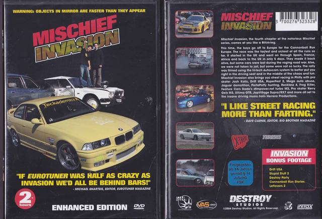 "Mischief Invasion" ist der neueste Kapitel der legendären Mischief-Serie und verspricht unvergessliche Action, Adrenalin und beeindruckende Autorennen, die dein Herz höher schlagen lassen. Auf dieser Enhanced Edition DVD bekommst du exklusive Einblicke in die aufregende Welt der Straßenrennen. Mit dabei sind atemberaubende Stunts, waghalsige Manöver und zahlreiche Überraschungen, die dich an den Bildschirm fesseln werden. Die Spieldauer von 2 Stunden bietet dir reichlich Action und Unterhaltung von Anfang bis Ende. Als besonderes Highlight enthält diese Edition Bonusmaterial, darunter spezielle Outtakes und exklusive Footage, die dir einen noch tieferen Einblick hinter die Kulissen gewähren. Dieses Produkt ist ein absolutes Muss für alle Fans von schnellen Autos und spannenden Renn-Action!