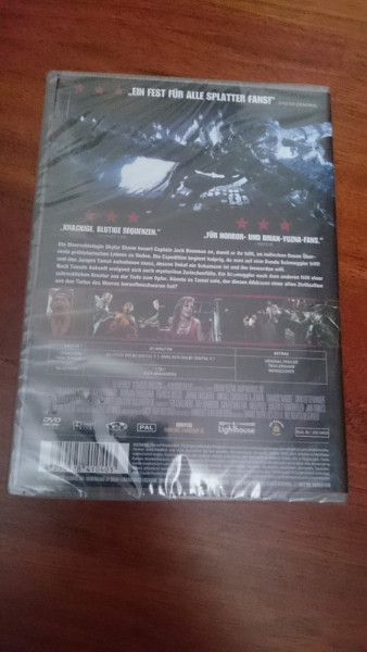 Die Vorderseite der DVD-Verpackung zeigt eine düstere und fesselnde Unterwasserwelt mit einer Person, die in diese geheimnisvolle Tiefe eintaucht, was die Zuschauer sofort in die Atmosphäre des Films zieht. Das Bild verspricht eine Geschichte, die sowohl mysteriös als auch spannend ist, perfekt für einen Filmabend, bei dem man sich etwas gruseln möchte.