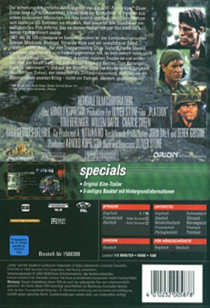 - Oscar-prämierter Film: "Platoon" hat den Oscar für den besten Film gewonnen und zählt somit zu den prämierten Klassikern der Filmgeschichte.