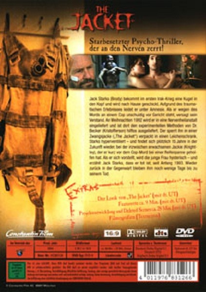 Erleben Sie mit "The Jacket" einen fesselnden Thriller, der die Grenzen von Zeit und Realität auf die Probe stellt. Diese DVD-Edition bringt eine unvergessliche Kombination aus Spannung und mysteriösen Ereignissen direkt in Ihr Wohnzimmer und bietet Ihnen die Möglichkeit, einen der bemerkenswertesten Filme des Genres immer wieder zu genießen.