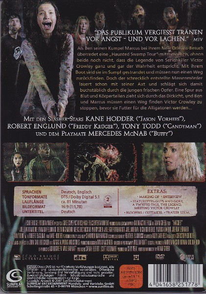 Als Ben seinen Kumpel Marcus bei ihrem New Orleans-Besuch überredet eine Haunted Swamp Tour mitzumachen, ahnen beide noch nicht, dass die Legende von Serienkiller Victor Crowley ganz und gar der Wahrheit entspricht. Mit ihrem Boot sind sie im Sumpf gestrandet und müssen nun einen Weg zurückfinden. Doch der schrecklich entstellte Massenmörder lauert schon mit seiner Axt und schlägt sich damit buchstäblich durch die jungen frischen Opfer. Eine Spur aus Blut und Körperteilen zieht sich durch das Dickicht und Ben und Marcus müssen einen Weg finden Victor Crowley zu stoppen, bevor sie Futter für die Alligatoren werden...
