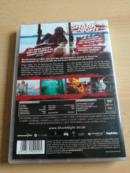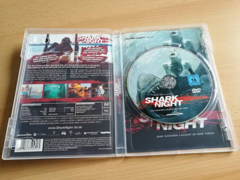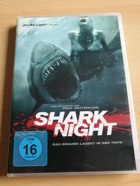 Verkaufe hier eine sehr schöne DVD "Shark Night". Sie ist gebraucht, wurde ca. 5 mal angeschaut. Die Hülle und die Disk haben sehbare gebrauchsspuren. Film läuft ohne Probleme. Der Zustand ist gut.