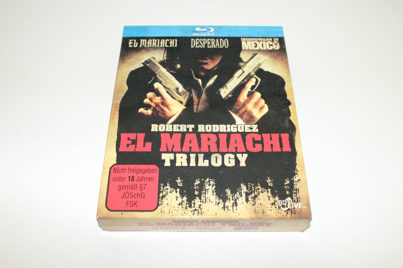 El Mariachi Trilogie im Edlen Pappschuber Teil 1 , 2 & 3 auf Blurayin BestzustandFSK 18 uncutKomplett in DeutschRegionalcode A B C