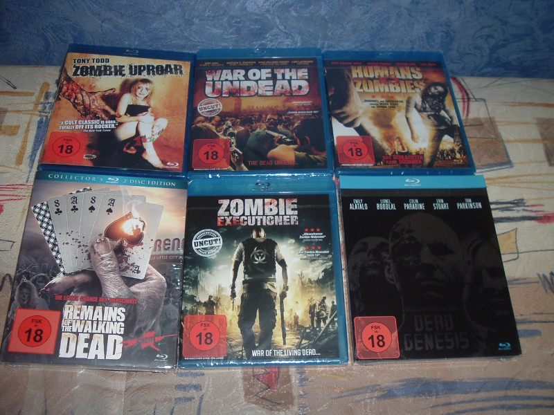 Folgende Filme sind dabei, bis auf Zombie Uproar (Bluray sehr guter Zustand, an der Hülle ist ein kleines Teil abgebrochen) sind alle originalverpackt in Folie.