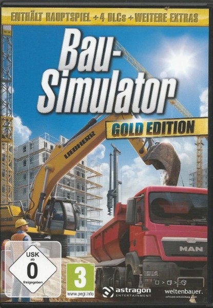 Die Bau-Simulator: Gold-Edition enthält die Vollversion des Simulations-Hits, alle bisher veröffentlichten Erweiterungen und weitere Extras. 19 originalgetreue Baufahrzeuge, u.a. originale Geräte und Trucks von Liebherr, MAN und STILL, sowie vier verschiedene Anhänger für die originalgetreue MAN-Zugmaschine stehen virtuellen Bauherren mit der Gold-Edition erstmals als Komplettpaket zur Verfügung. Der große Fuhrpark des Basisspiels wird mit dem Liebherr LB 28 Drehbohrgerät mit komplett neuer Funktionalität und dem Liebherr LR 1300 Raupenkran, dem Liebherr 150 EC-B Flat-Top-Kran und dem Begleitfahrzeug für Schwertransporte um viele Spielstunden erweitert. Hierbei haben die Entwickler auf ein realistisches Fahr- und Arbeitsgefühl geachtet. So kannst Du beispielsweise einen Bagger mit 2 Joysticks in der EURO-Steuerung bedienen. Gängige Gamepads und Lenkräder werden ebenfalls unterstützt. Entdecke die riesige, frei befahrbare Welt mit verschiedenen Ortschaften, Feldern und einer Autobahn - alleine oder mit Freunden im Multiplayer-Modus. Bist Du erfolgreich, winken größere und lukrativere Aufträge sowie ein größerer Firmensitz mit noch mehr Möglichkeiten. Neben den aktuell über 200 Missionen des Hauptspiels wartet die Gold-Edition mit Highlights wie dem viel gewünschten Brückenbau und verschiedenen Hochhaus-Bauprojekten auf.
