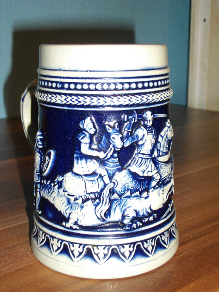 Ich verkaufe hier einen Bierkrug von Gerzit, Motiv Drachentöter, im guten Zustand.