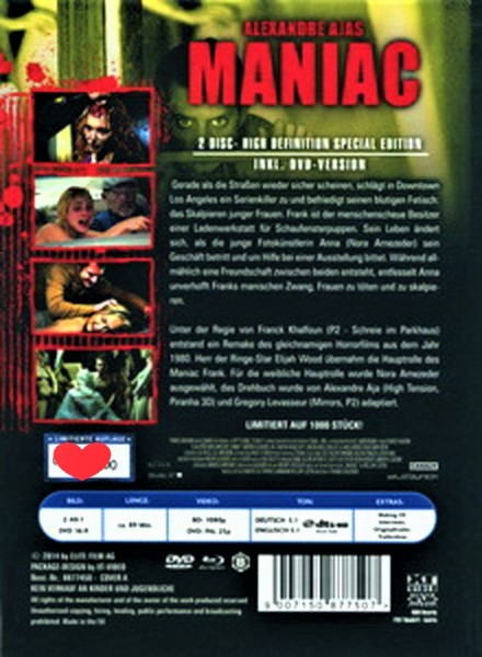 Maniac Alexandre Ajas Remake Blu Ray&DVD MEDIABOOK UNCUT wie NEU