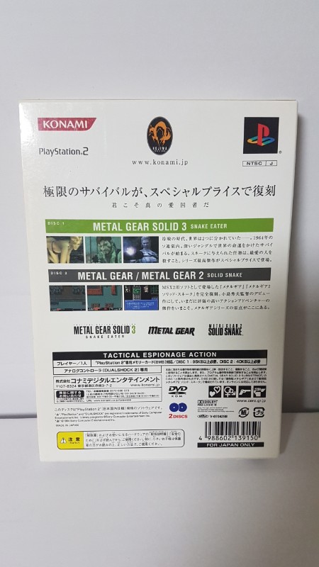 Ich verkaufe hier das Ps2-Spiel "Metal Gear Solid 2 - Sons of Liberty" als Japanische Version an. Das Spiel ist komplett auf Japanisch. Zum Spielen wird eine US-Amerikanische oder Japanische Konsole benötigt. Die erste von zwei Discs hat deutliche Gebrauchsspuren und ein paar starke Kratzer. Wurde NICHT auf Funktion getestet. Die zweite Disc hat nur leichtere Kratzer. Sonst nur leichte Lagerungsspuren.