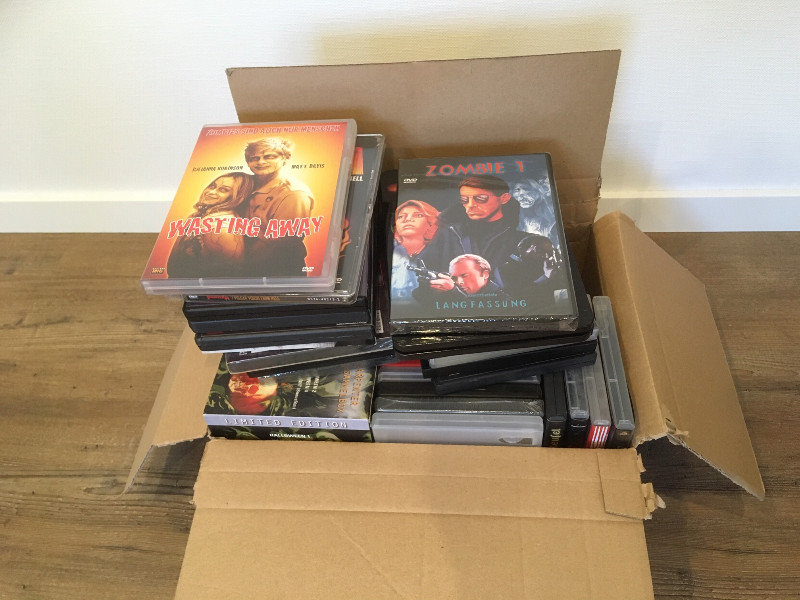 Ich verkaufe hier 56 Horror und SPlatter Filme, alles Original Ware und bis auf einen auch alle mit Hülle Booklet etc.