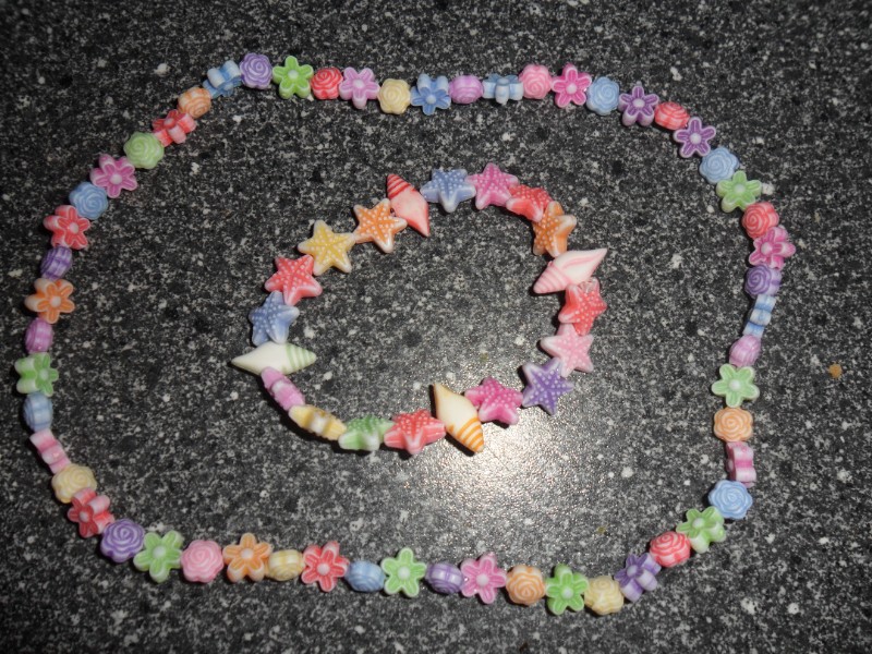 Farbe: bunt Perlen: Blumen und Muscheln elastisches Gummiband Handmade ideal für den Urlaub am Strand