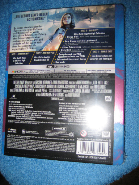 Zum Verkauf steht das 4K/3D Blu Ray Steelbook Alita:Battle Angel Geprägtes Steel Ton:Deutsch.