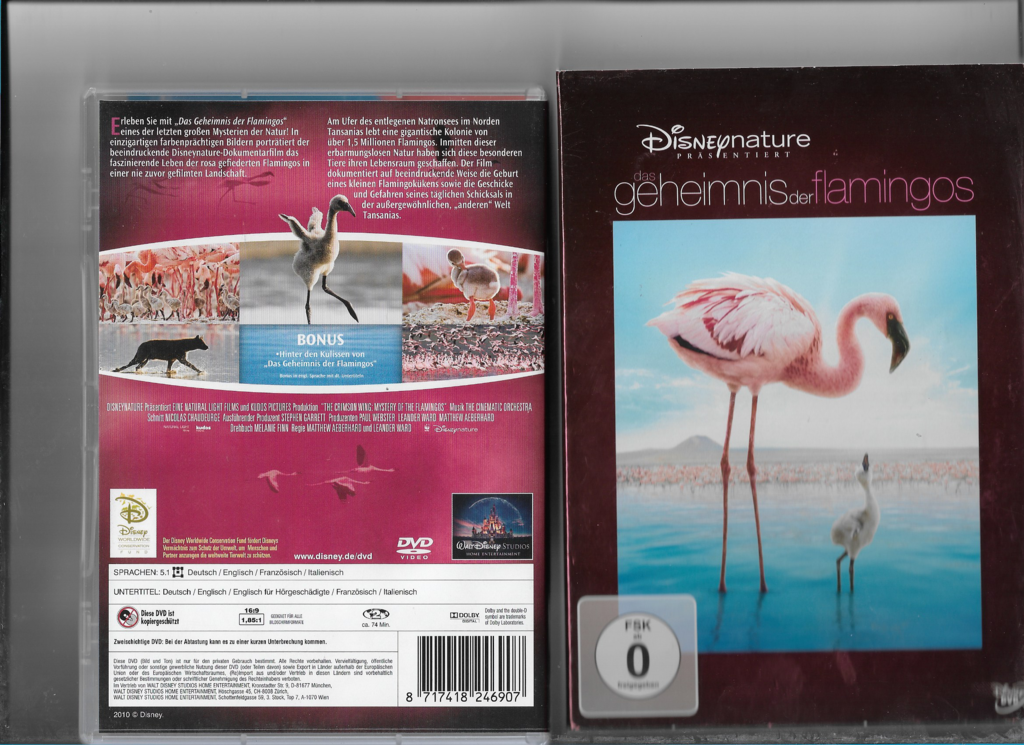 Erleben Sie mit „Das Geheimnis der Flamingos“ eines der letzten großen Mysterien der Natur! In einzigartigen farbenprächtigen Bildern porträtiert diese beeindruckende DisneyNature Dokumentarfilm die faszinierende Welt der rosa gefiederten Flamingos in einer zuvor gefilmten Landschaft. Atemberaubende Aufnahmen, die direkt aus der unberührten Natur Tansanias stammen, zeigen die spektakulären Lebensweisen und das Umfeld dieser eleganten Vögel. Neben beeindruckenden Naturaufnahmen bietet diese DVD auch exklusive Bonus-Inhalte mit Einblicken „Hinter die Kulissen von 'Das Geheimnis der Flamingos'“. Lassen Sie sich in die Welt von über 1,5 Millionen Flamingos entführen, die im Wettlauf gegen die Zeit versuchen, ihre Nachkommen zu schützen.