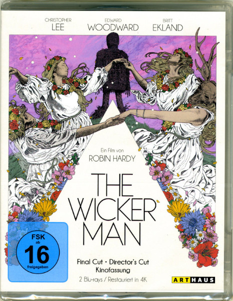 Extras: "Die Drehorte von THE WICKER MAN", "50 Jahre THE WICKER MAN", "Das verlorene Ende – Robin Hardys Original Skript", "Interview mit Britt Ekland", "Bildergalerie", "Wicker Man Enigma", "Brandopfer: Der Kult des Wicker Man", "Die Verehrung des Wicker Man", "Die Musik zu Wicker Man", "Interview mit Robin Hardy", "Interview mit Robin Hardy und Christopher Lee", "Trailer", "Audiokommentar", "Audiokommentar – Making of", Wendecover.
