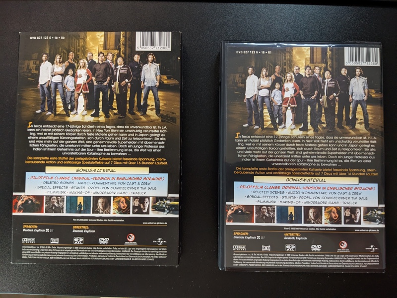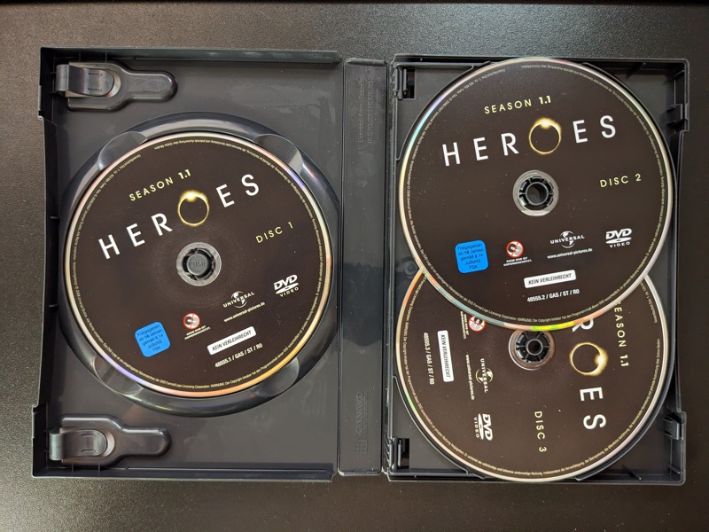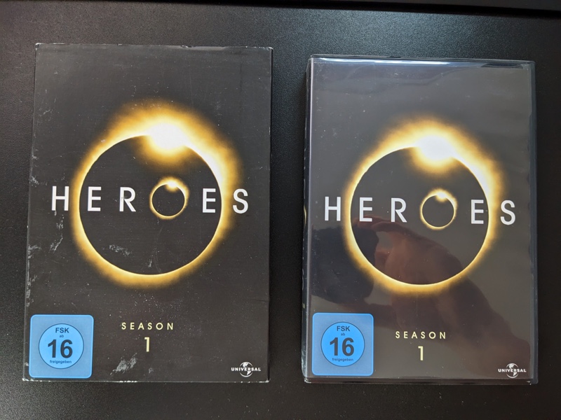 Guten Tag! Wir verkaufen die DVD-Collection "Heroes - Staffel 1" in gutem, gepflegtem Zustand im schicken Pappschuber, der Gebrauchsspuren außen aufweist.