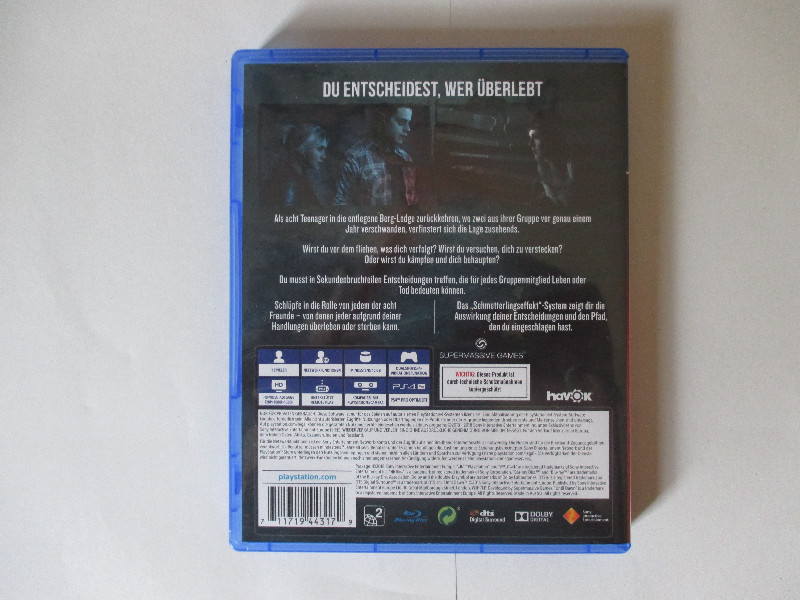 Verkauft wird das PS4 Spiel Until Dawn.Siehe auch Original Bilder.