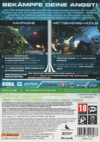 Tauchen Sie ein in das düstere Universum von Aliens mit der Limited Edition von Aliens: Colonial Marines für die Xbox 360. Diese spezielle Ausgabe des Spiels bietet neben dem Grundspiel auch zusätzliche Inhalte, die jeden Fan der legendären Sci-Fi-Filmreihe begeistern werden. Entwickelt von Gearbox Software und veröffentlicht von SEGA, verspricht dieses Spiel eine fesselnde Mischung aus Action und Horror, die Sie direkt in die bedrückende Atmosphäre der Aliens-Welt eintauchen lässt.