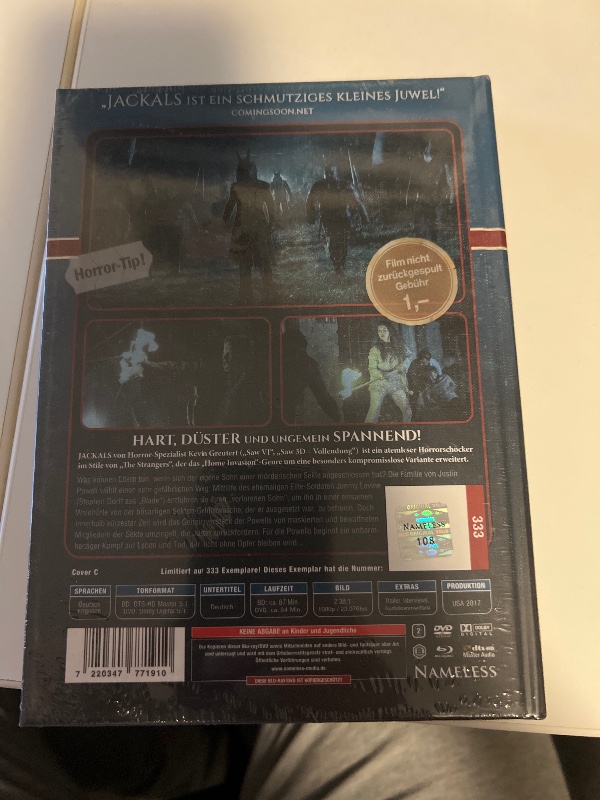 Das Jackals Mediabook Bluray Nameless OVP ist das perfekte Sammlerstück für alle Horrorfilm-Liebhaber. Aufwendig produziert und exklusiv verpackt, verspricht diese Blu-ray ein unvergessliches Filmvergnügen. Mit seiner fesselnden Geschichte und der meisterhaft inszenierten Spannung bietet "Jackals" ein beeindruckendes Filmerlebnis, das unter die Haut geht. Die limitierte Auflage im Mediabook-Format macht dieses Produkt zu einem echten Highlight für jede Sammlung. Dank der hochwertigen Verarbeitung und Gestaltung ist das Mediabook ein Schmuckstück in jeder Kollektion. Die Originalverpackung sorgt zudem dafür, dass die Blu-ray in bestem Zustand bei Ihnen ankommt.