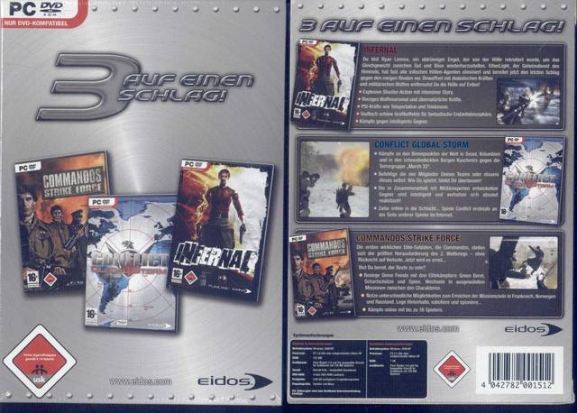 Das 3er Pack "Commandos Strike Force, Conflict Global Storm und Infernal" ist ein Muss für jeden PC-Gamer, der auf der Suche nach packender Action und tiefgehender Story ist. Greifen Sie jetzt zu und erleben Sie drei der besten Action-Spiele in einer einzigen, unschlagbaren Sammlung!