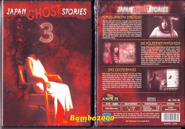 Mein Ichi – Jahrestag eines Todes: Nur kurz nach dem Tod ihres Freundes wird Minakos Vater von seiner Firma in eine neue Stadt versetzt. Da das neue Haus alt und baufällig ist, schreibt die Familie die nächtlichen Geräusche dem Zustand des Gebäudes zu. Doch dann entdecken Minako und ihre Schwester Yujio, daß der Geist eines Mädchens für die Geschehnisse verantwortlich ist. Während Yukio ihre Erkenntnis mit Halluzinationen abtut, beharrt Minako auf ihrer Geschichte. Und schon bald muß die Familie feststellen, daß ihr trautes Heim gräßliche Geheimnisse birgt… Die hölzernen Pantoffeln: Takagi, frisch von der Tokyoer Universität graduiert, kehrt zurück in sein Heimatdorf in den Bergen. Trotz seines Erfolges erfüllt ihn ein Gefühl der Verzweiflung. Eine Verwandte rät ihm daher, den alten Tempel zu besuchen. Dort trifft er auf ein wunderschönes Mädchen, daß aber ein ungwöhnliches Verhalten an den Tag legt. Da aber beide sehr einsam sind, fühlen sie sich zueinander hingezogen. Was Takagi nicht weiß ist, daß das Mädchen ein grausames Geheimnis hütet, daß sie unter allen Umständen bewahren möchte… Das Geisterhaus: Eine junge Frau wird, kurz nachdem sie sich von ihren Eltern getrennt hat, die ihre Heirat nicht guthießen, bei einem Autounfall getötet. Das Haus, welches sie und ihr Ehemann bezogen hatten, steht lange Zeit aufgrund unheimlicher Geschichten, die sich darum ranken, leer. Als eine Familie dort einzieht, bittet die Ehefrau ihren Mann Yoshio den Gerüchten nachzugehen. Dieser nimmt die Geschichten jedoch nicht ernst. Ein Fehler mit fatalen Folgen…