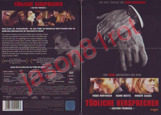 "Tödliche Versprechen - Eastern Promises" im Steelbook-Format ist der ideale Film für jeden Krimi- und Thrillerliebhaber. Der fesselnde Streifen von Kultregisseur David Cronenberg entführt Sie in die düsteren Machenschaften der Londoner Unterwelt. Mit eindrucksvollen Schauspielern wie Viggo Mortensen, Naomi Watts und Vincent Cassel erleben Sie ein actiongeladenes Drama voller intensiver Momente und unvergleichlicher Spannung. Dieses besondere Steelbook ist eine echte Sammleredition und ein Blickfang in jeder DVD-Sammlung. Holen Sie sich jetzt diesen hochgelobten Thriller und lassen Sie sich von einem prämierten Meisterwerk mitreißen!