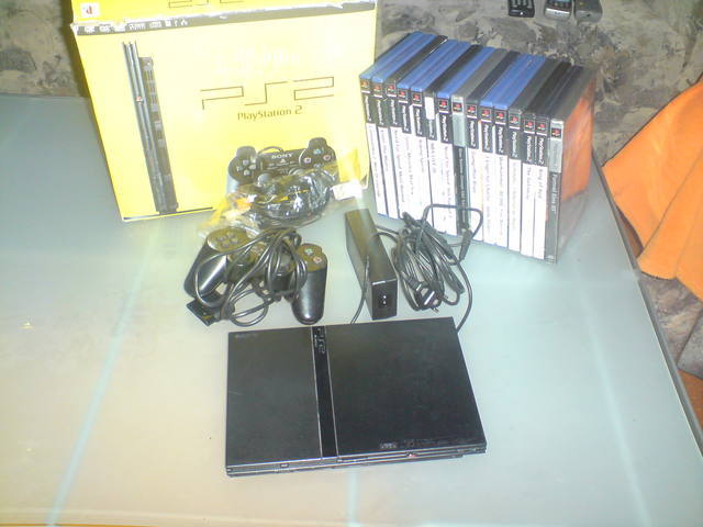 hier verkaufe ich meine playstation2 slimeline mit allen kabeln,einen kontroller und 16 spiele...wer wissen will was das für spiele sind der sollte mich anschreiben...die konsole wie auch die spiele sind in einem guten zustand