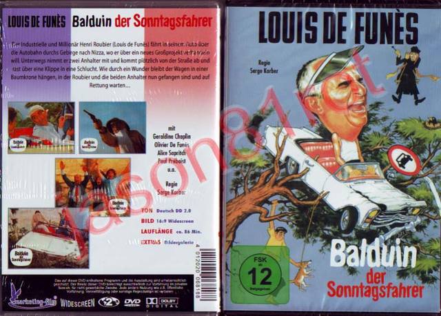 Verpassen Sie nicht die Chance, diesen Juwel der Filmkomödie in Ihre Sammlung aufzunehmen. Erleben Sie Louis de Funès in einer seiner besten Rollen und genießen Sie den unvergänglichen Charme französischer Filmkunst. Bestellen Sie jetzt Ihren neuen und originalverpackten DVD "Balduin der Sonntagsfahrer"!