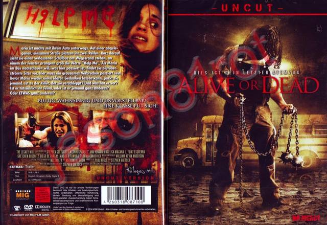 "Alive Or Dead - Dies ist dein letzter Atemzug" ist ein fesselnder und intensiver Horrorfilm, der dich von der ersten bis zur letzten Minute fesseln wird. Blutig, wahnsinnig und unvorstellbar grausam - dieser Film ist nichts für schwache Nerven. Der packende Plot folgt der jungen Maria, die auf einer verlassenen Straße die Fahrt ihres Lebens antritt. Ein geisterhaftes Gefängnis voller Schrecken und düsteren Rätseln erwartet dich. Mit eindrucksvollen Effekten und einer düsteren Atmosphäre wird dieser uncut Horror-Streifen garantiert lange in Erinnerung bleiben!