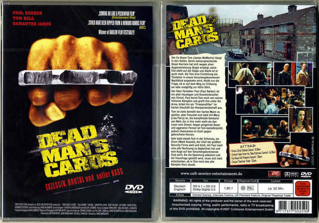 In "DEAD MAN’S CARDS" geht es um das rauhe Leben von Ex-Boxer Tom, der nach einer schicksalhaften Wendung seines Lebens in die düstere Welt der Türsteher-Wars eintaucht. Exzessiv, brutal und voller Hass – dieses Motto zieht sich durch die Handlung und verspricht Spannung pur. Die Hauptrollen sind eindrucksvoll besetzt mit Paul Barber, Tom Bell und Samantha Janus, deren schauspielerische Leistungen den Film zu einem echten Highlight machen.