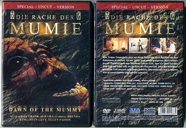 Beschreibung: Eine Gruppe Fotomodelle reist mit ihrem Fotografen nach Ägypten, um dort Aufnahmen zu machen. Auf der Suche nach einem geeigneten Motiv wählen sie ein Pharaonengrab aus. Sie ahnen jedoch nicht, dass ein Fluch auf dem Grab liegt und jeden trifft, der die Ruhe des Pharaos stört. Doch das Unfassbare geschieht, Safiramn und seine Armee lebender Toter erwachen und es beginnt eine grauenerregende Jagd auf alle Lebenden.