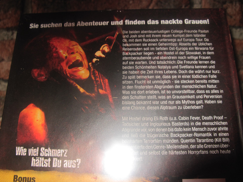 Verpassen Sie nicht die Chance, dieses phantastische Mediabook in Ihre Sammlung aufzunehmen. Die ungeschnittenen Szenen und die hochwertige Verpackung machen dieses Mediabook zu einem unverzichtbaren Sammlerstück. Erleben Sie "Hostel" in einer Intensität, die Sie so noch nie gesehen haben!