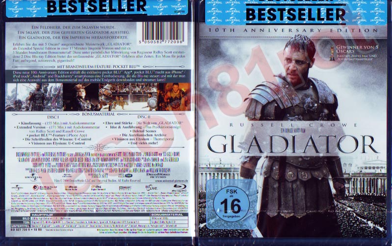 Erleben Sie Ridley Scotts episches Meisterwerk "Gladiator" in einer speziellen 10th Anniversary Edition auf Blu-Ray und tauchen Sie ein in eine Welt des heroischen Abenteuers und der packenden Action. Diese besondere Edition feiert das 10-jährige Jubiläum des Films und bietet nicht nur technisch aufpoliertes Bild- und Tonmaterial, sondern auch exklusive Bonusinhalte, die diesen Kauf unverzichtbar machen.