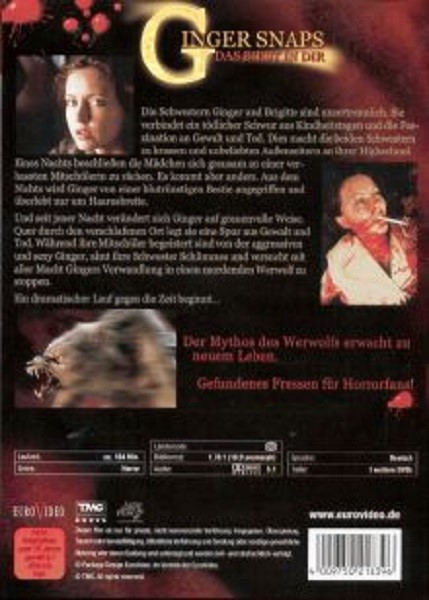 Mit atemberaubenden Special Effects, einer düsteren Atmosphäre und einem mitreißenden Plot ist "Ginger Snaps" ein unverzichtbares Stück in jeder Horrorfilm-Sammlung. Hol Dir Dein Exemplar und erlebe die unvergessliche Spannung von Mädchen, Frau und Werwolf.
