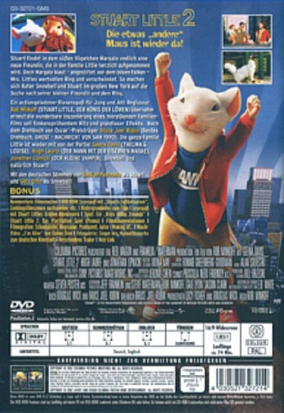 Verpassen Sie nicht die Gelegenheit, "Stuart Little 2" zu Ihrer DVD-Sammlung hinzuzufügen und genießen Sie einen Film voller Herz und Humor, der Generationen verbindet und ein Lächeln auf jedes Gesicht zaubert. Holen Sie sich noch heute das Abenteuer von Stuart Little nach Hause und lassen Sie sich von seinem ungebrochenen Optimismus und seiner Abenteuerlust inspirieren!