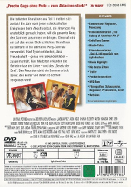 Handlung: In dieser Fortsetzung des erfolgreichen ersten Teils kehren unsere liebgewonnenen Charaktere zurück und erleben erneut ein Sommer voller wilder Abenteuer, peinlicher Momente und unvergesslicher Partys. Allein oder mit Freunden – "American Pie 2" garantiert beste Unterhaltung und einen wunderbaren Filmabend.