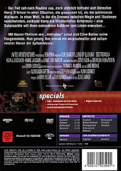 "Lord of Illusions" entführt Sie in eine Welt voller Magie, Geheimnissen und dunkler Mächte. Privatdetektiv Harry D'Amour gerät in eine verstörende Welt der Illusionen und Albträume, als er einen bizarren Mord untersucht. Diese Version bietet zusätzlichen Einblick und Tiefe in die düstere Story – ein absolutes Highlight für Kenner anspruchsvoller Horrorstreifen.