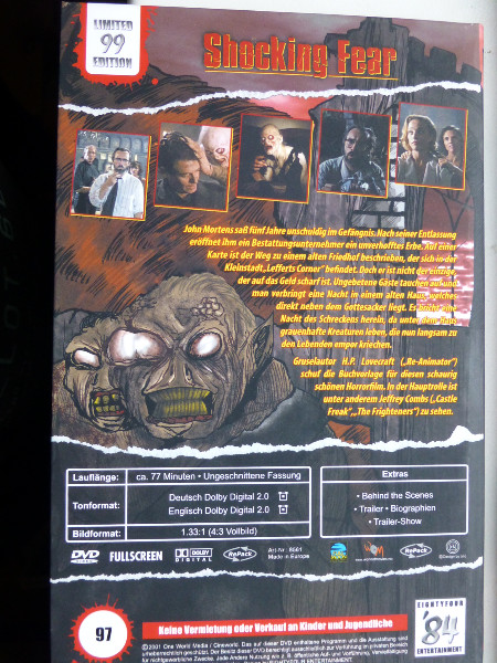 Tauchen Sie ein in die düstere Welt von H.P. Lovecraft mit der exklusiven DVD "Shocking Fear". Dieses Horror-Meisterwerk präsentiert sich in der limitierten Edition mit einer imposanten großen Hartbox, die Sammlerherzen höher schlagen lässt.