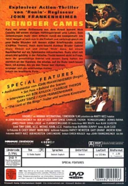 Reindeer Games - Director's Cut enthält zusätzliche Szenen und einen tieferen Einblick in die Psyche der Charaktere. Die intensive Handlung beginnt damit, dass Rudy Duncan (Ben Affleck) versucht, nach seiner Entlassung aus dem Gefängnis ein neues Leben zu beginnen, nur um sich in einem gefährlichen Spiel wiederzufinden, das von dem teuflischen Gabriel (Gary Sinise) angeführt wird. Die verführerische Ashley (Charlize Theron) bringt sowohl Spannung als auch mysteriöse Twists in die Geschichte. Diese Eine perfekt gemachte DVD ist ideal für Sammler und Fans, die hochwertige Actionfilme lieben.