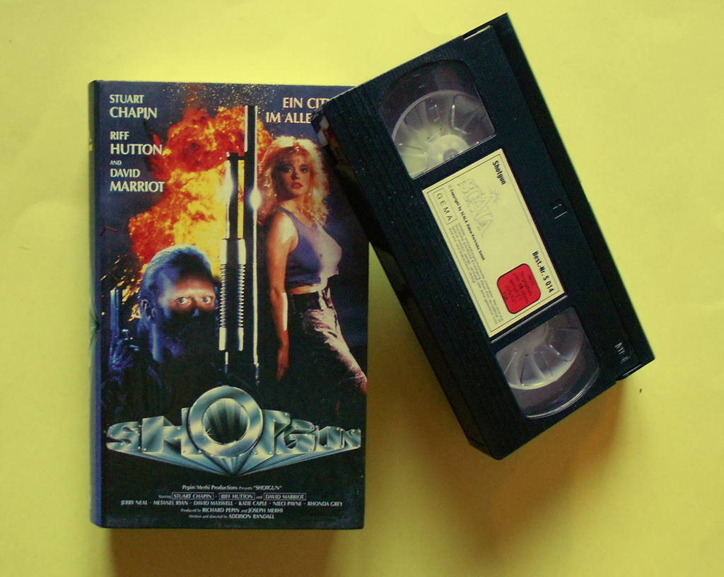 Tauchen Sie ein in die glorreichen Tage der 80er Jahre mit der klassischen VHS-Kassette „Shotgun“ von Stuart Chapin. Diese seltene Action-Kassette verspricht pures Adrenalin und explosive Szenen, die Ihr Herz schneller schlagen lassen. „Shotgun“ bringt die ikonische Ästhetik und den ungezähmten Charme der Ära direkt in Ihr Wohnzimmer. Mit Stuart Chapin, Riff Hutton und David Marriot in den Hauptrollen erleben Sie eine gnadenlose Jagd in einer Stadt, in der das Gesetz mit dem Lauf einer Schrotflinte geschrieben wird.