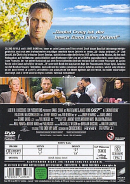 Verpassen Sie nicht die Gelegenheit, diesen kritisch gefeierten und Publikum-liebenden Film zu besitzen. "Casino Royale" ist mehr als nur ein Film – es ist ein aufregendes Erlebnis, das Sie immer wieder neu entdecken können. Holen Sie sich heute Ihre Kopie und lassen Sie sich von diesem Meisterwerk der Action und Spannung mitreißen!