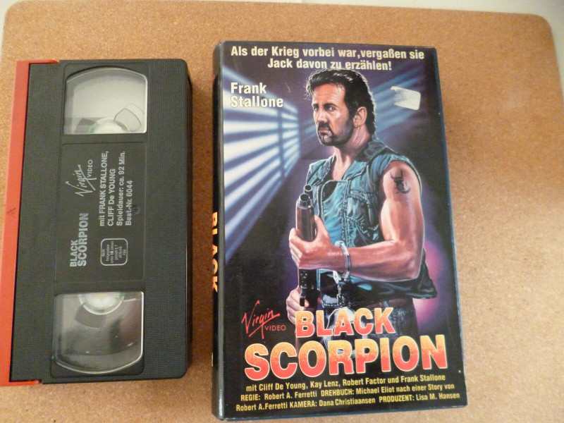Für alle Retro-Filmfans und Sammler lohnt sich ein Blick auf die VHS-Version des Kultklassikers "Black Scorpion" aus dem Jahr 1988, eine echte Rarität in der Hartbox-Edition. Dieses actiongeladene Meisterwerk mit Frank Stallone in der Hauptrolle zieht jeden in seinen Bann und überzeugt mit energiegeladenen und packenden Szenen. Die imposante Hülle verleiht dem Klassiker mit ihren ikonischen Illustrationen zusätzlichen Charme und ist ein echter Hingucker in jeder Sammlung.