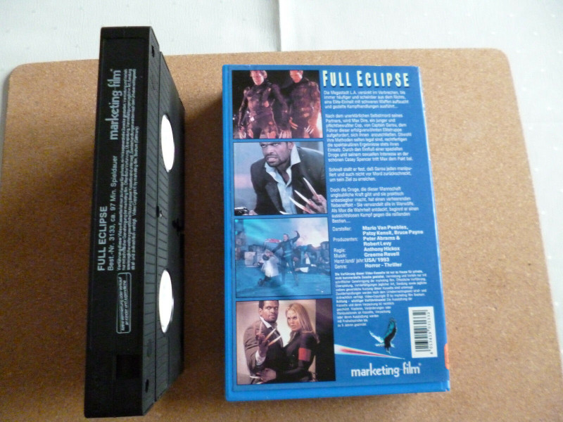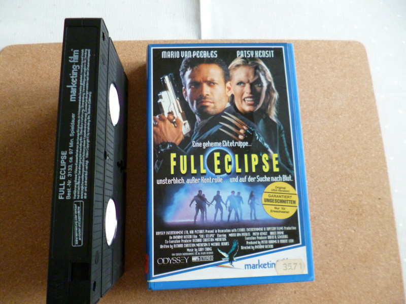 Diese limitierte VHS ist ein Muss für jeden Sammler von Horror-Videos. Stöbern Sie nicht länger in der Vergangenheit – sichern Sie sich diesen Schatz für Ihre Sammlung und erleben Sie die Spannung von "Full Eclipse - Uncut-" in der originalen VHS-Qualität!