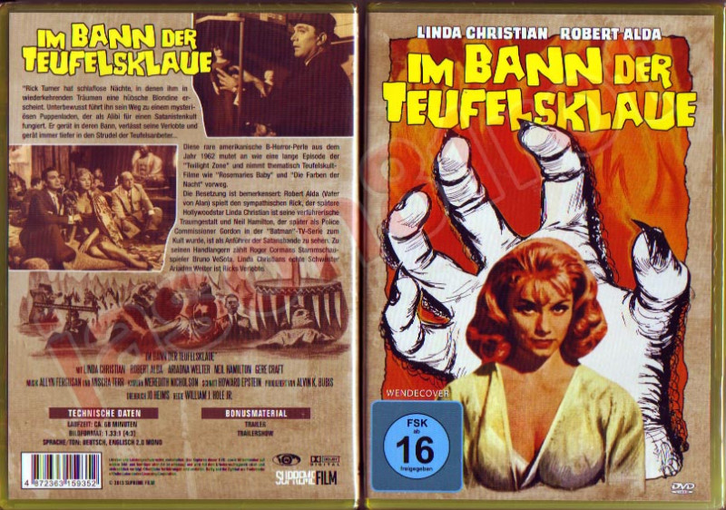 Erleben Sie das pure Horrorfilmvergnügen mit der brandneuen und ungeschnittenen DVD „Im Bann der Teufelsklaue“. Lassen Sie sich fesseln von dieser amerikanischen Horror-Perle, die eine spannende Geschichte um mysteriöse Träume, Hypnose und teuflische Puppendienste erzählt. Die talentierten Schauspieler Linda Christian und Robert Alda ziehen Sie in eine Welt voll unheimlicher Ereignisse und dunkler Geheimnisse. Die DVD ist originalverpackt und bietet Ihnen nicht nur den Film in bester Qualität, sondern auch spannendes Bonusmaterial wie Trailer und zusätzliche Szenen, die Ihr Gruselerlebnis perfekt abrunden. Kaufen Sie „Im Bann der Teufelsklaue“ und sichern Sie sich ein Stück Horrorfilmgeschichte für Ihre Sammlung!