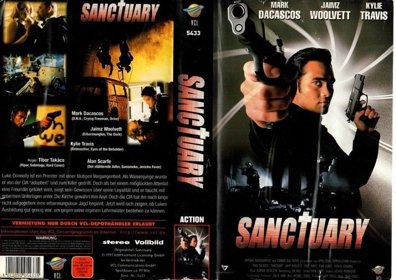 Sanctuary auf VHS ist ein packender Actionfilm, der Sie von der ersten Minute an fesseln wird. Diese seltene und ungekürzte Edition von VCL bietet Ihnen Adrenalin pur in stereo Vollbild. Die Geschichte dreht sich um Luke Connolly, einen Priester mit einer blutigen Vergangenheit. Als Waisenkind wurde er vom CIA „adoptiert“ und zu einem Killer geformt. Doch als ihm ein Attentat misslingt, taucht er mit seiner Freundin unter. Die Kirche gewährt ihm Asyl, doch die CIA ist ihm dicht auf den Fersen.