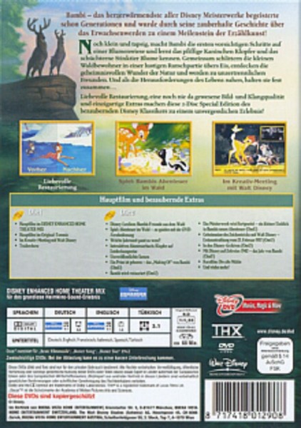 Die 2-Disc Special Edition richtet sich nicht nur an junge Zuschauer, sondern auch an Sammler und Disney-Fans, die den Klassiker in einer besonderen Ausgabe genießen möchten. Der Titel deutet klar auf eine Edition mit zwei Discs hin, was den Reiz für alle erhöht, die Wert auf eine etwas umfangreichere Veröffentlichung legen. Gerade bei einem so bekannten Werk wie Bambi hat eine Special Edition ihren ganz eigenen Charme.