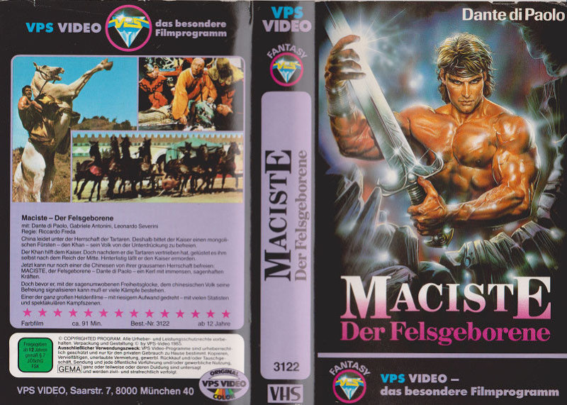 Maciste - Der Felsgeborene ist ein episches Abenteuer, das Ihre Fantasie beflügeln wird. Diese VHS-Kassette entführt Sie in das alte Reich der Mongolen und Tartaren, wo nur der tapferste Held den Kaiser und sein Volk retten kann. Mit Dante di Paolo in der Hauptrolle erleben Sie eine spannende Geschichte voller Action, Heldenmut und spektakulärer Kämpfe. Der Film bietet eine beeindruckende Farbwelt und eine Laufzeit von ca. 91 Minuten, die Sie in eine längst vergangene Ära versetzen wird. Die Kassette stammt aus dem besonderen Filmprogramm von VPS VIDEO und ist damit ein seltenes Sammlerstück für Liebhaber klassischer Abenteuerfilme.
