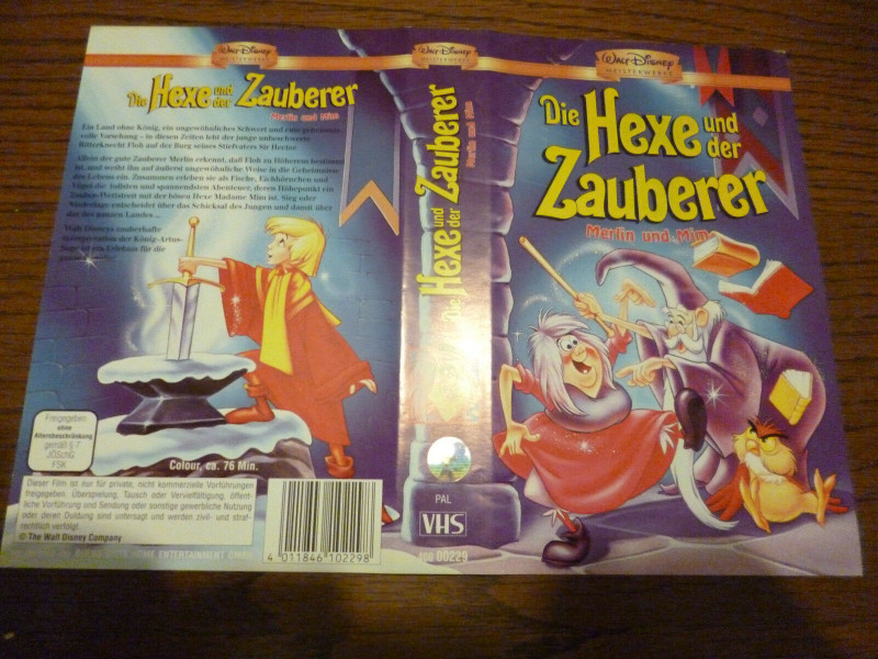 Tauche ein in die zauberhafte Welt von Walt Disney's "Die Hexe und der Zauberer" mit dieser seltenen, nostalgischen VHS-Kassette. Diese klassische Kinderfilm erzählt die spannende Geschichte über den jungen Arthur, der unter der Anleitung des weisen Zauberers Merlin zur legendären Figur König Artus heranwächst. Lassen Sie die Magie der Vergangenheit in Ihrem Wohnzimmer lebendig werden. Der Film ist für die ganze Familie geeignet und bringt 76 Minuten pure Unterhaltung in Farbenpracht ins Heim. Erleben Sie unvergessliche Charaktere wie Merlin, Madame Mim, Arthur und viele mehr, die von Disneys unverkennbarem Charme und Detailreichtum zum Leben erweckt werden. Dies ist Ihre Chance, ein Stück Filmgeschichte zu besitzen und Ihre Kinder oder sich selbst in die goldenen Zeiten der VHS zurückzuführen.
