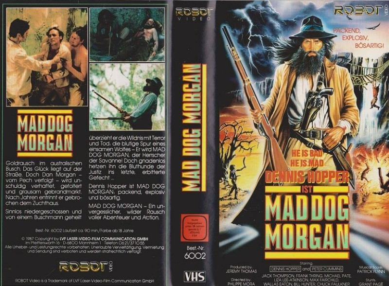Tauchen Sie ein in die wilde Welt des australischen Busches mit dem fesselnden Western "Mad Dog Morgan" auf einer klassischen VHS-Kassette mit Wendecover von Robot Video. Erleben Sie den spannenden Kampf von Dan Morgan, einem Außenseiter, der von Pech verfolgt wird und den Gesetzen des Buschs trotzt. Dieses seltene Sammlerstück bietet eine exklusive Wendecover-Edition, die sowohl authentischen Retro-Charme als auch filmische Kunstfertigkeit verkörpert. Die explosive und packende Darstellung von Dennis Hopper als Mad Dog Morgan macht diesen Film zu einem unvergesslichen Abenteuer, das Sie immer wieder sehen möchten. Mit einer Laufzeit von 90 Minuten lädt Sie dieser Film zu einer Reise voller Gefahren und Abenteuer ein. Holen Sie sich jetzt dieses besondere Sammlerstück und sichern Sie sich einen Platz in der aufregenden Welt von Mad Dog Morgan!