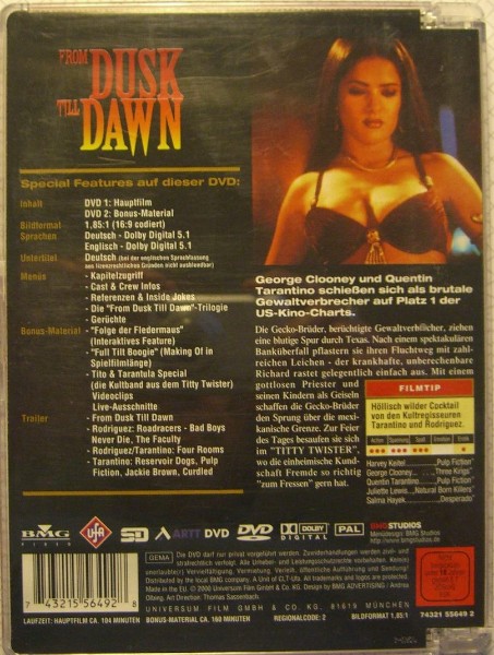 Erleben Sie den Kultfilm "From Dusk till Dawn" in seiner gesamten ungekürzten Pracht und bereichern Sie Ihre DVD-Sammlung mit dieser exquisiten Edition. Lassen Sie sich von der düsteren Atmosphäre und der packenden Handlung mitreißen – ein wahres Must-Have für jeden Filmfreund! Zögern Sie nicht und sichern Sie sich noch heute dieses Meisterwerk des Horrorkinos.