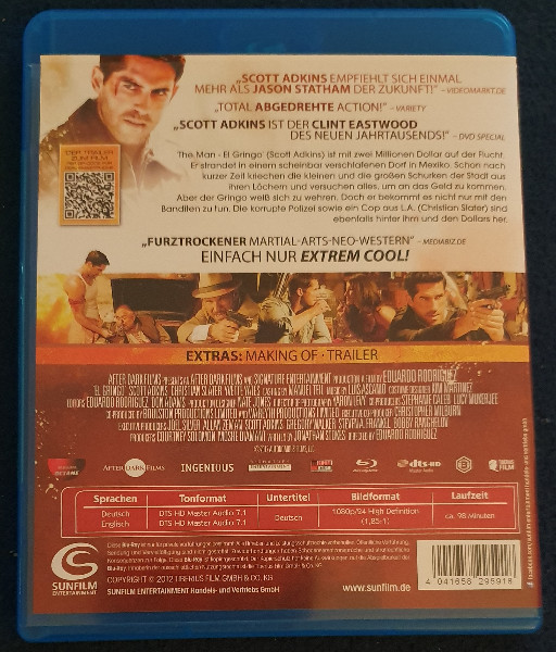 Profitieren Sie von einem optimalen Heimkino-Erlebnis in Full HD und hervorragender Tonqualität. Die Blu-ray "El Gringo" ist ein Muss für jeden Action-Fan und bringt das unverwechselbare Kinofeeling direkt zu Ihnen nach Hause. Holen Sie sich jetzt diese einmalige FSK 18 Version und genießen Sie den "harten Actioner, der aus allen Rohren feuert!" (Zitat von ZapBangMagazine.com).