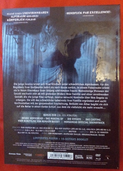 Tauchen Sie ein in die düstere Welt von "Horsehead Mediabook Uncut" und bereiten Sie sich auf ein einmaliges Filmvergnügen vor. Diese 3-Disc Limited Collector’s Edition wartet mit einer atemberaubenden Kombination aus High-Definition-Bildern und packender Handlung auf Sie. Die aufwändig gestaltete Sammleredition ist ein Muss für jeden ernsthaften Horror-Fan. Lassen Sie sich von der intensiven Atmosphäre und den verstörenden Bildern fesseln, die Sie in eine schaurige Traumwelt entführen.